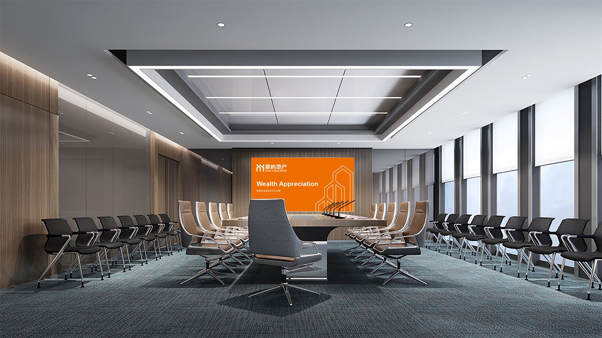 標志整體為矩形,輪廓穩重端方簡單直接,契合房地產構建、筑造的行業屬性且易于記憶和識別。